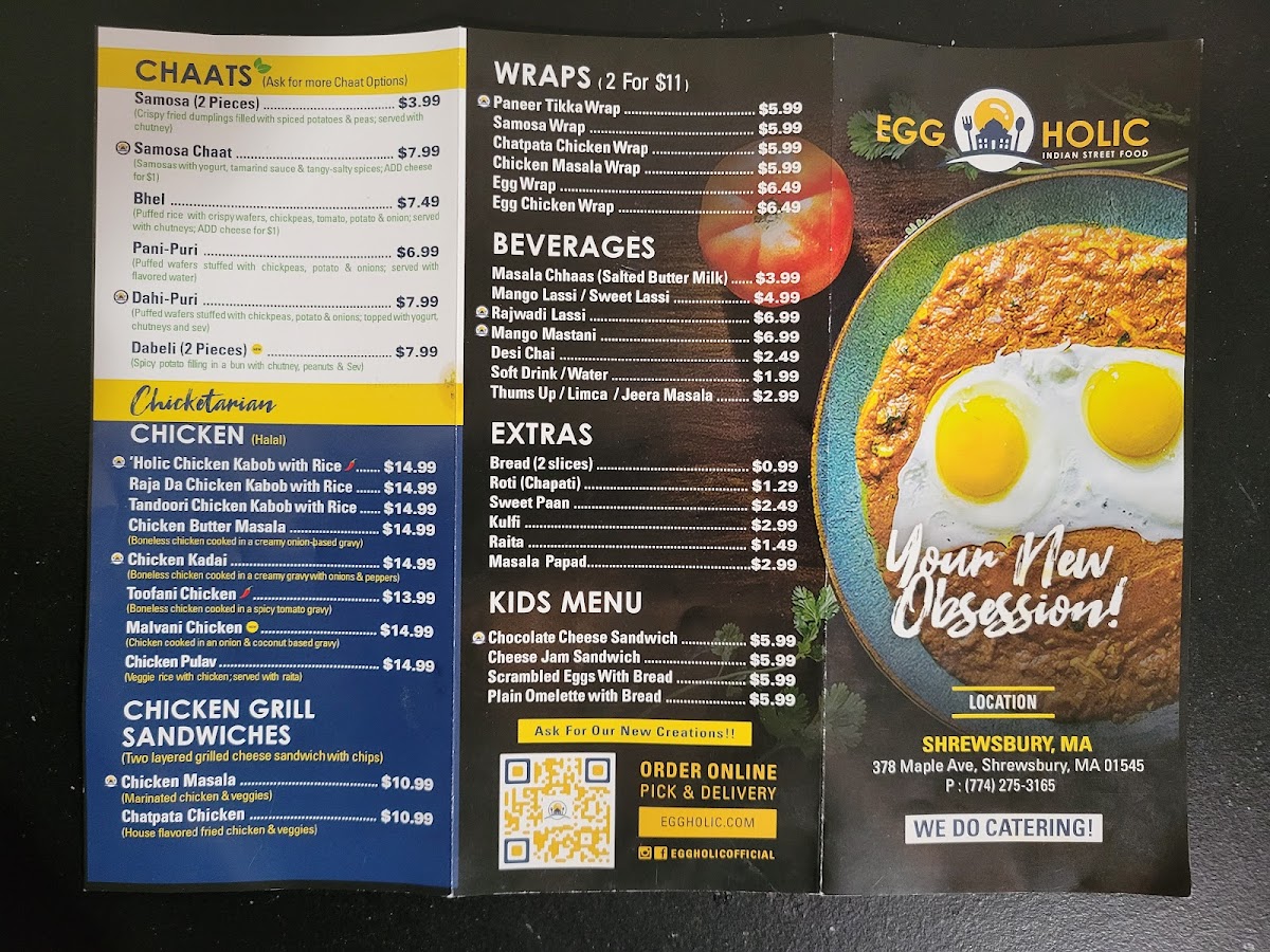 Welcome to Eggholic - Indian Veg & Egg Street Food Shrewsbury, located at 378 Maple Ave in Shrewsbury, MA. This vibrant eatery specializes in delivering authentic Indian street food, focusing on delicious vegetarian and egg-based dishes. The atmosphere is inviting with a modern touch, featuring an outdoor patio for al fresco dining.